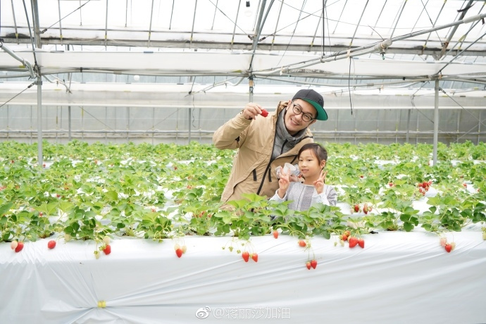 新浪娱乐讯 8日,陈浩民娇妻蒋丽莎在微博分享了一组一家人幸福出游的照片。照片中陈浩民搂着大女儿陈雅薷置身草莓园,除了小妮子开心比V外,陈浩民更是向镜头展示了自己采摘的大颗草莓,父女俩看上去简直不要太开心。