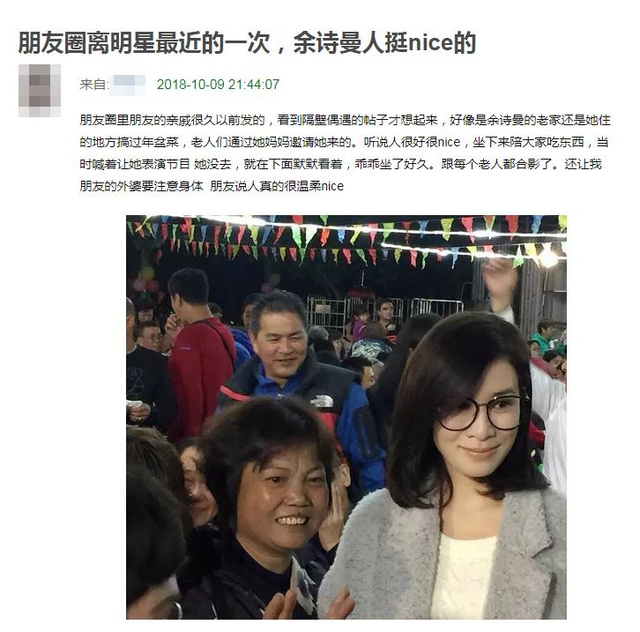 随着延禧攻略的大火,佘诗曼本人被偶遇的帖子也是经常出现在网络上,而每一次被路人偶遇后,都被感叹颜值高性格好。近日,一位网友在网络上发帖称想起很久以前在朋友圈见过与佘诗曼的合照。