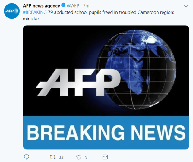 环球网报道(记者张飞扬)法新社最新消息:喀麦隆一名官员表示,在喀麦隆遭到绑架的79名学生已经被释放。