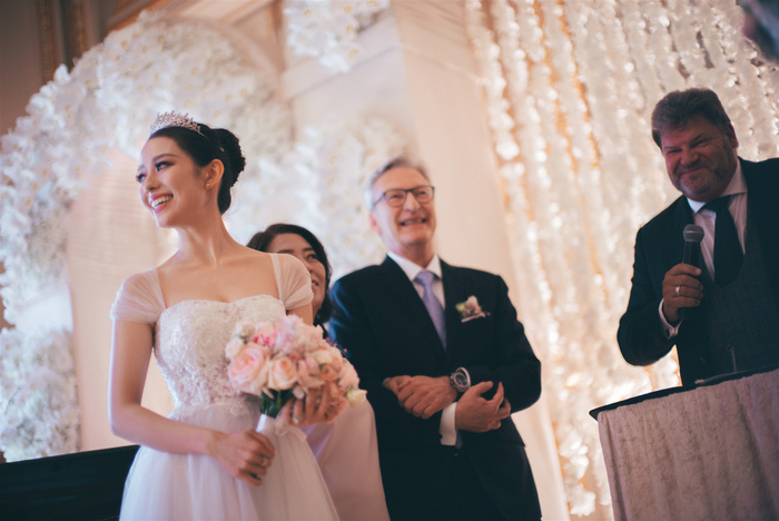 整场婚礼优雅而浪漫,两位新人在众人的祝福下交换了誓词,新娘子Gina Alice也因为众人的祝福,落下了动情的眼泪。
