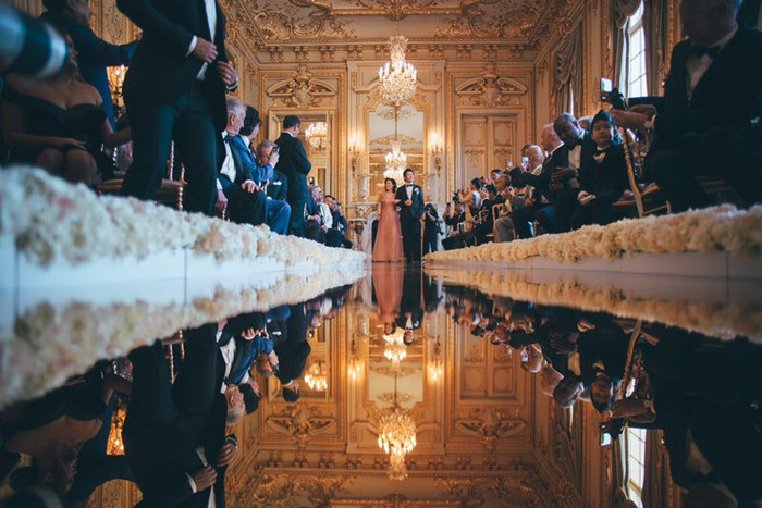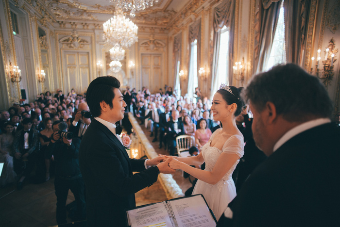法国当地时间6月2日,郎朗与德国青年钢琴家Gina Alice在巴黎历史悠久的凡尔赛宫举行了婚礼晚宴。