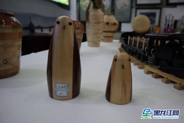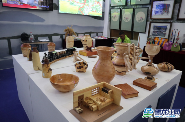 黑龙江省文旅融合展区牡丹江展位上的木旋制品。