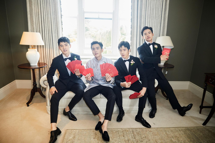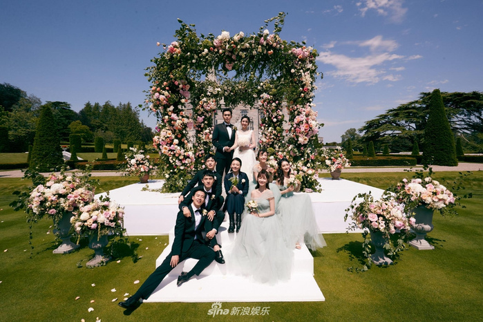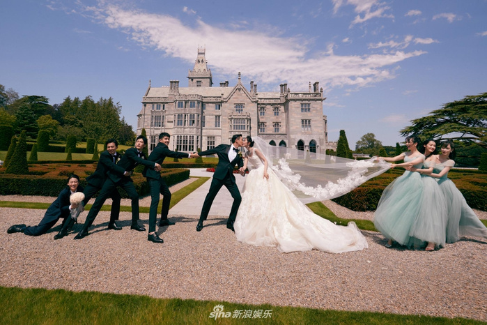 新浪娱乐讯 当地时间27日,张若昀唐艺昕婚礼在爱尔兰举行。帅气伴郎团井柏然、刘昊然、郭麒麟、颜值超高伴娘团宋茜、沈梦辰、李沁与新人张若昀、唐艺昕互动的美好时刻记录,西装亮相的司仪马思纯也很帅气哦~