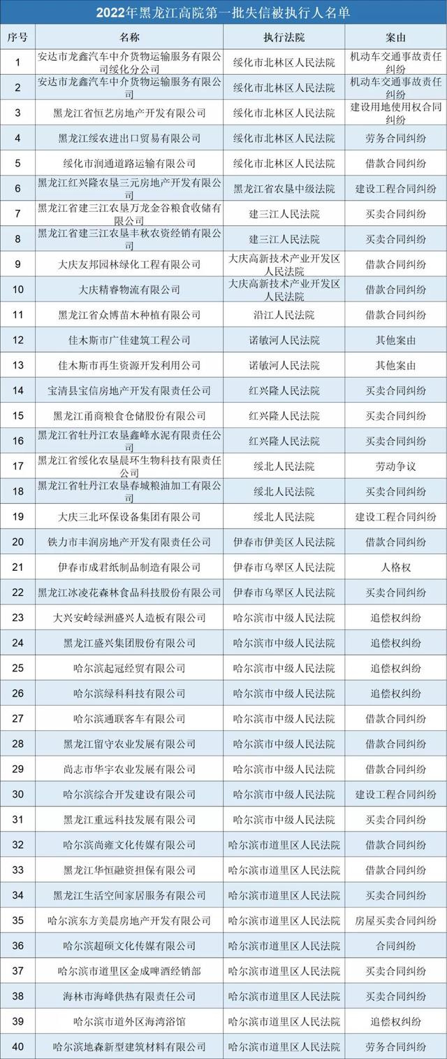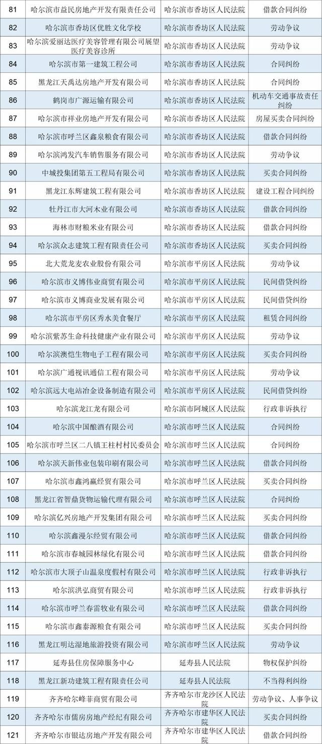2022年黑龙江高院首批失信被执行人名单来了!本次失信曝光台共曝光121家失信企业,哪些企业被曝光?一起来看看吧!