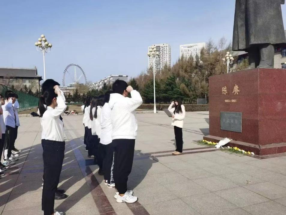 黑龙江工商学院在哈尔滨和江苏海安两地开展“清明祭英烈”主题教育实践活动。