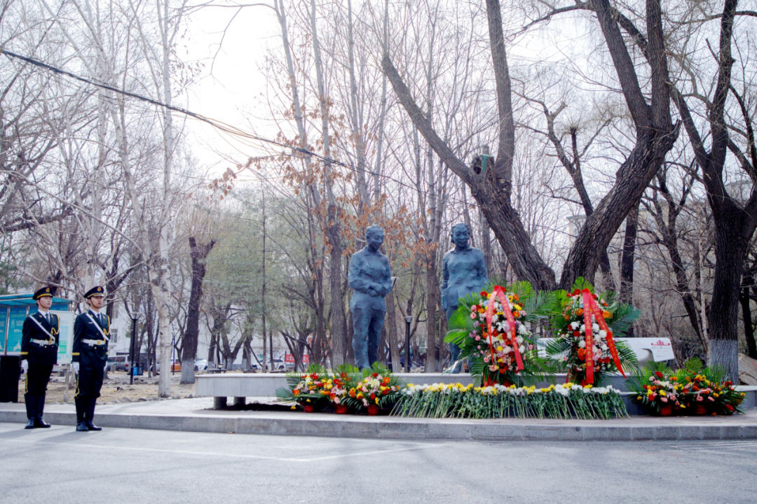 黑河学院师生在王肃公园烈士纪念碑前开展主题党日活动、主题祭扫活动,追忆先烈丰功伟绩。
