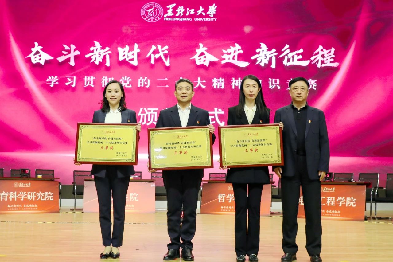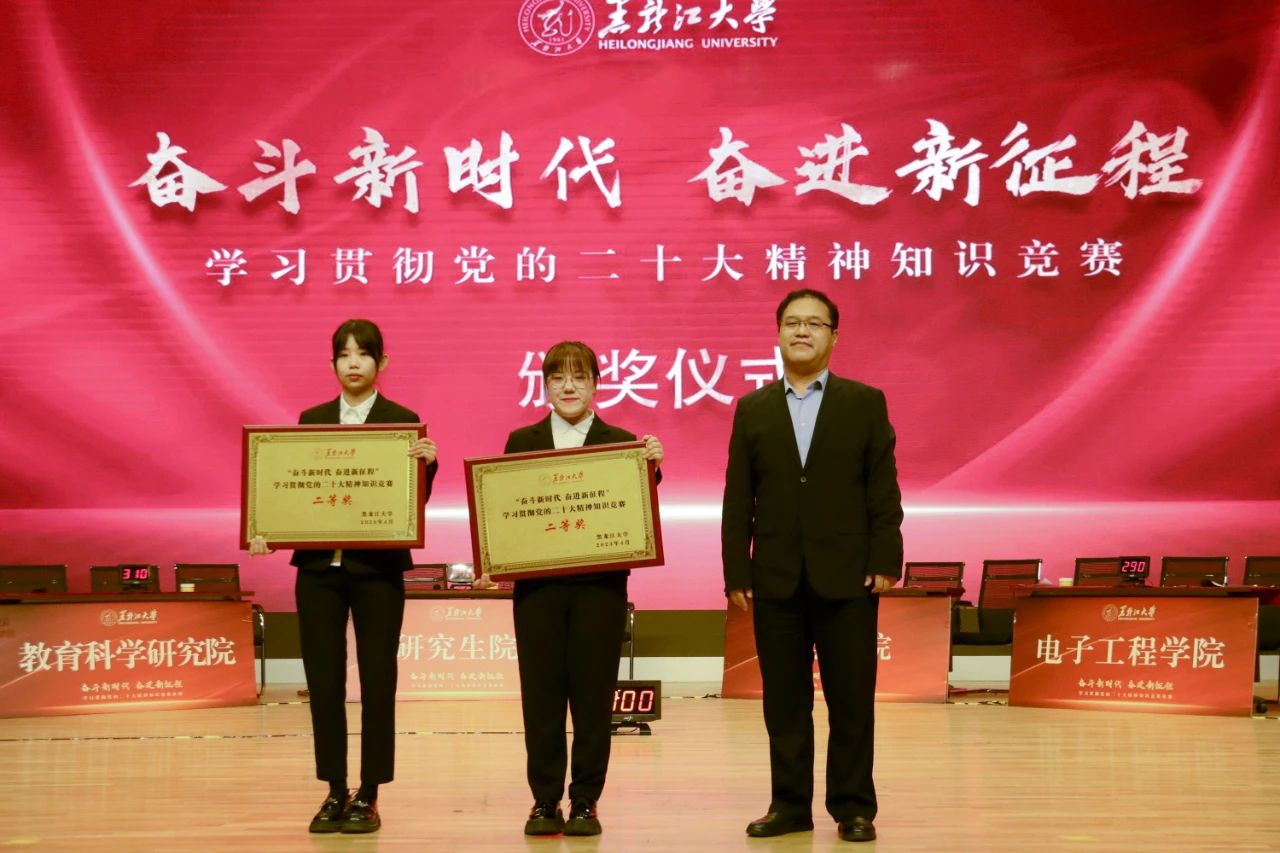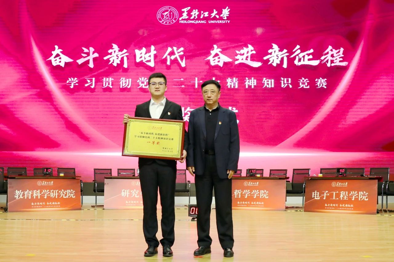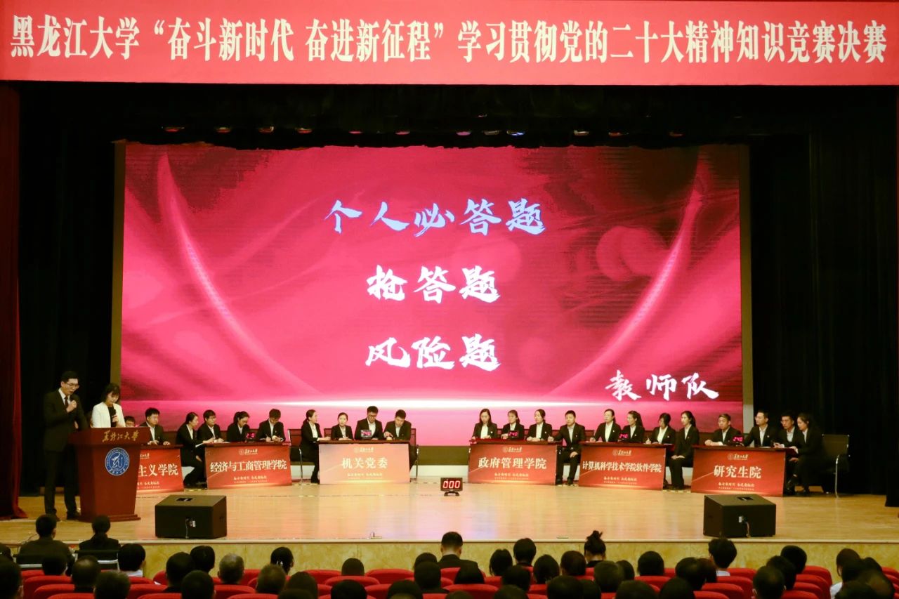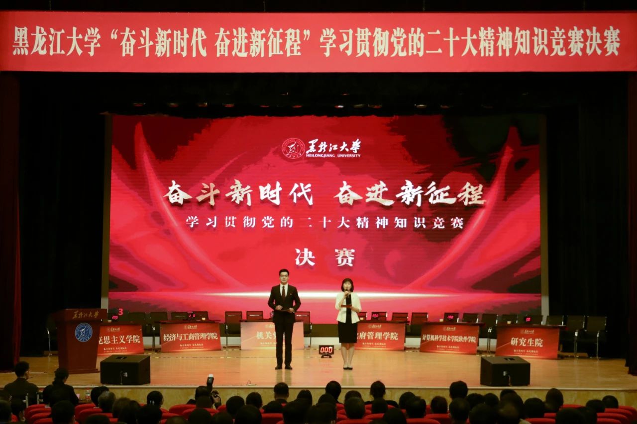 黑龙江网讯(记者 徐楠)4月19日下午,黑龙江大学“奋斗新时代 奋进新征程”学习贯彻党的二十大精神知识竞赛决赛在音乐厅举行。省委学习贯彻习近平新时代中国特色社会主义思想主题教育第十六巡回指导组成员,校党委书记王永清,校党委副书记丁宏,副校长张颖春、井立强、李卓,全校中层干部、各学院师生代表参加活动。