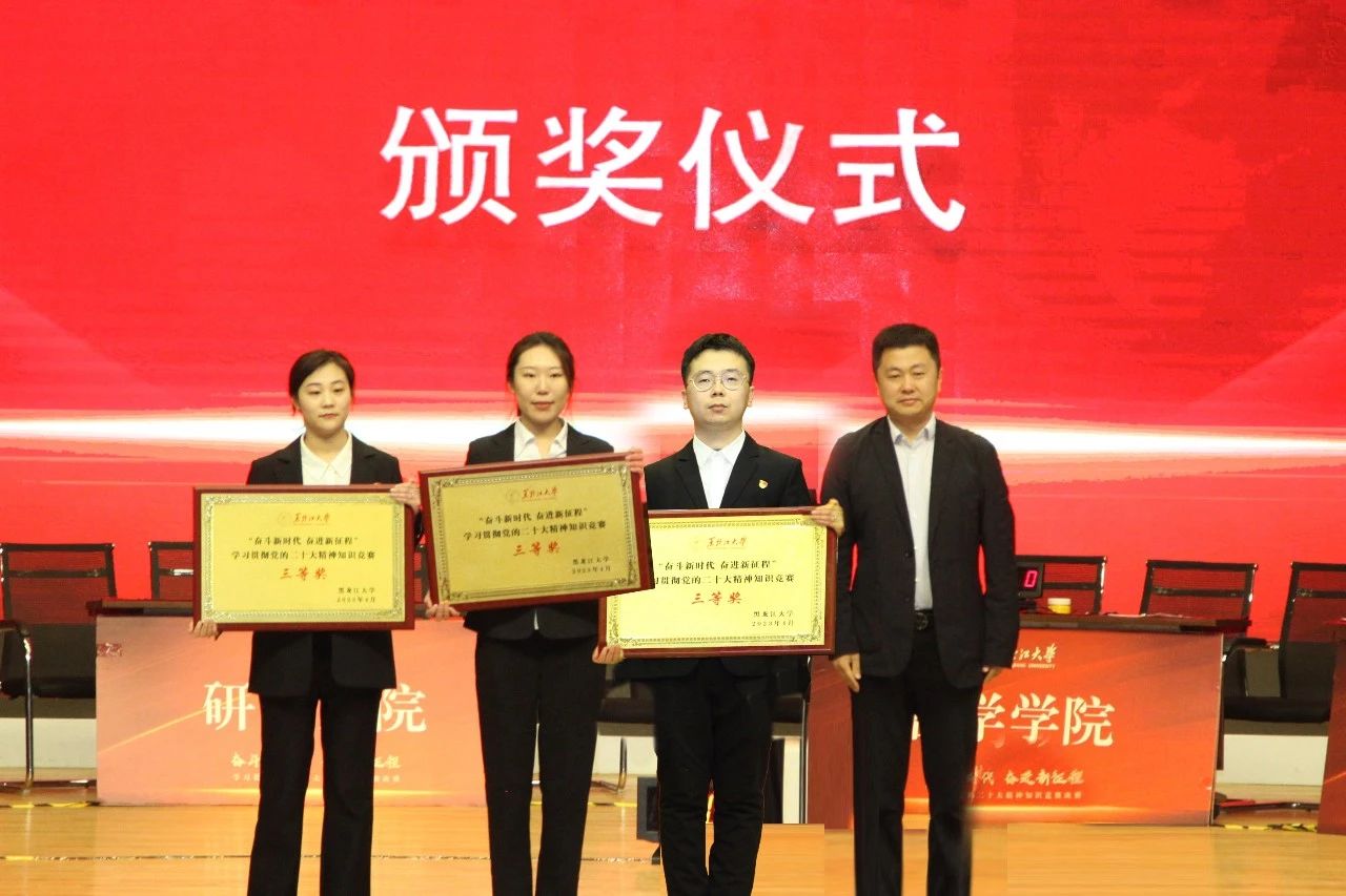 本次知识竞赛自举办以来,得到了学校党委、各职能部门、各学院的高度关注和大力支持。比赛中,各参赛队伍精心组织、领导干部亲自带队、广大师生踊跃参与,共有31个二级党组织的228名师生参加比赛,营造了“比学赶帮超”的良好氛围,创新了学习形式,打造了一堂参与度高、覆盖面广、理论性强的二十大精神学习精品课,全面激发了广大师生挺膺新担当、奋楫新作为、建功新时代的强烈热情。