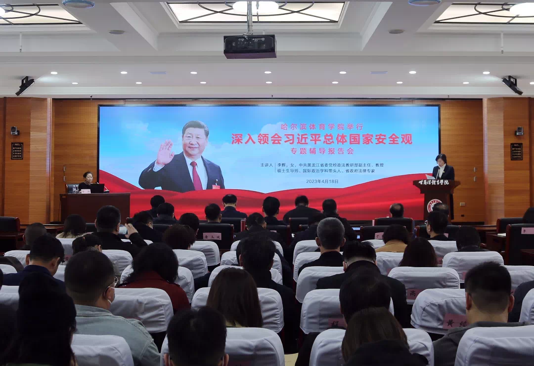 哈尔滨体育学院组织开展习近平总体国家安全观专题辅导报告会,教育引导师生深入学习贯彻习近平总体国家安全观。