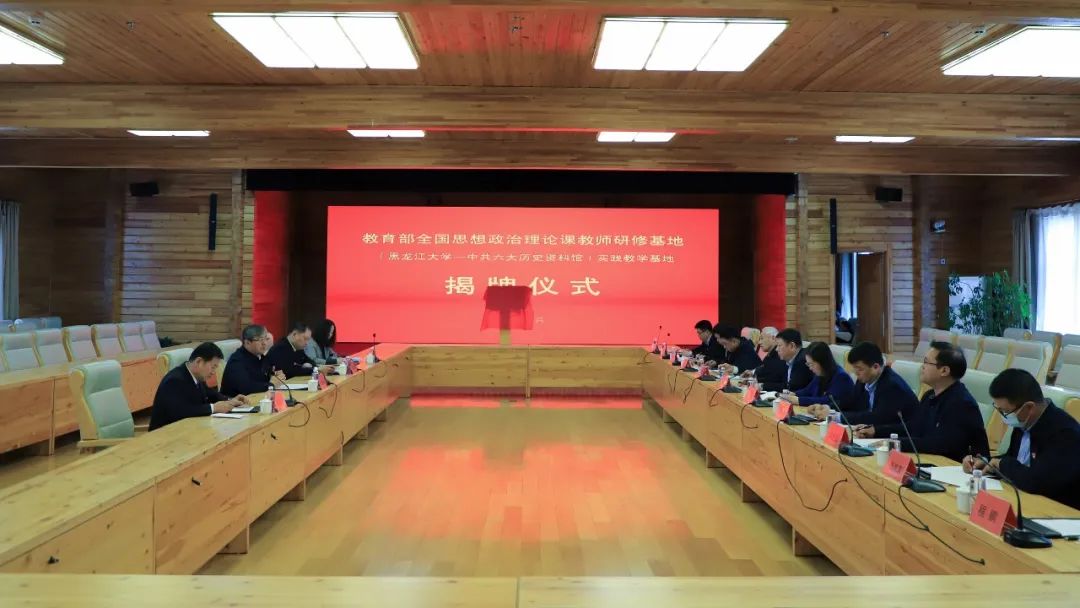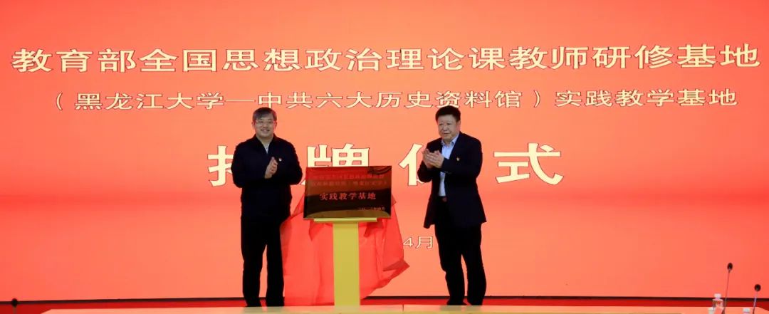 王永清、罗海涛共同为教育部全国思想政治理论课教师研修基地(黑龙江大学)中共六大历史资料馆实践教学基地揭牌。