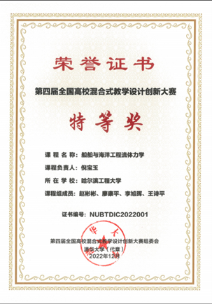 倪宝玉始终牢记立德树人根本任务,坚守教学一线,培育可靠顶用的社会主义接班人。他主讲《船舶与海洋工程流体力学》等本科/研究生课程4门,课程获批国家级一流课程、黑龙江省一流课程、省课程思政示范课程,教学团队入选黑龙江省课程思政教学团队、省优秀研究生导学团队;作为统稿人,通过教育部申报设置,获批建立了“极地装备技术与工程”新兴交叉学科。