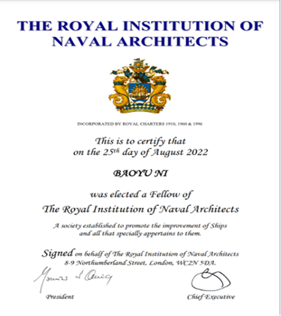 倪宝玉当选英国皇家造船工程师学会会士