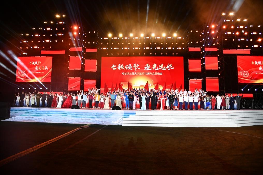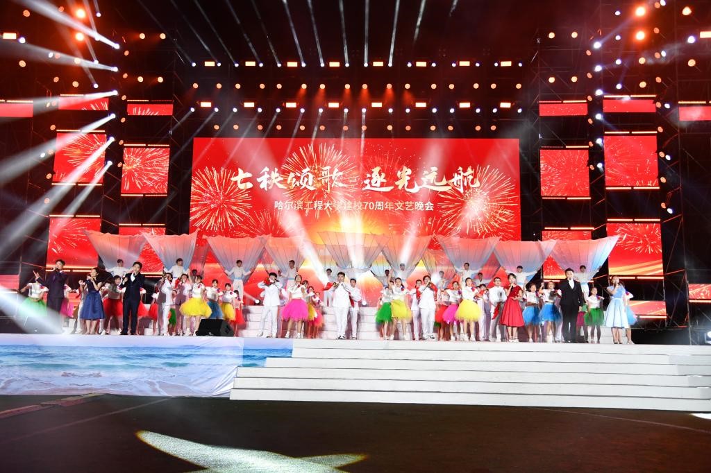 黑龙江网讯(赵琳琳 记者 徐楠)9月1日晚,在哈尔滨工程大学70周年校庆文艺晚会上,航母造型为主体的舞台,宛如一艘航母停泊在军工操场,即将载着哈工程人的荣光与梦想破浪远航。晚会以哈工程七十载光辉岁月为线索,分为“启航·理想之光”“远航·自强之光”“领航·希望之光”三个篇章,再现了哈工程这艘巨轮追逐理想之光、自强之光、希望之光的荣光之旅。