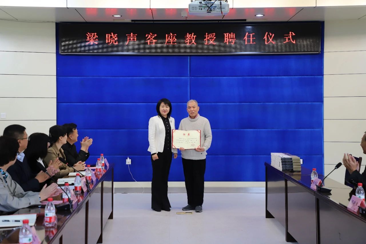 杨其滨介绍了梁晓声先生的创作经历。于文秀为梁晓声颁发黑龙江大学中国现当代文学客座教授聘书。
