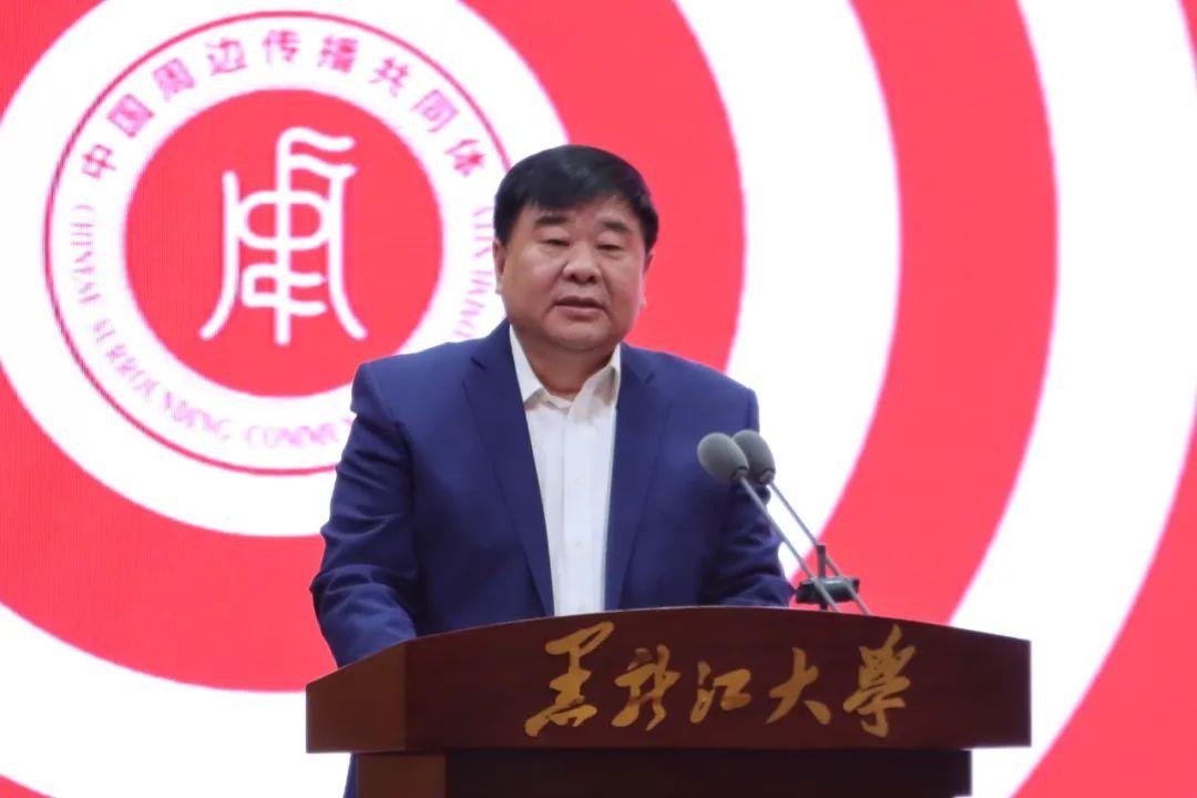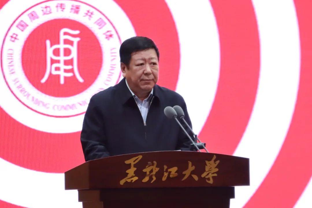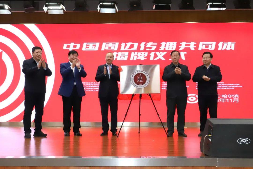 中共中央对外联络部原副部长于洪君,中华全国新闻工作者协会书记处书记张百新,新华社原副社长严文斌,中共黑龙江省委宣传部副部长、网信办主任魏松贤,黑龙江大学党委书记王永清共同为“中国周边传播共同体”揭牌。