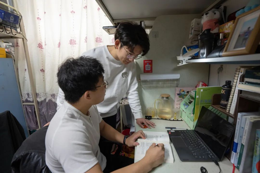 刚入学时,1米85的胡皓绮只有130斤,经过不断地和室友进行健身训练,现在已然成为了一个健硕的小伙子。