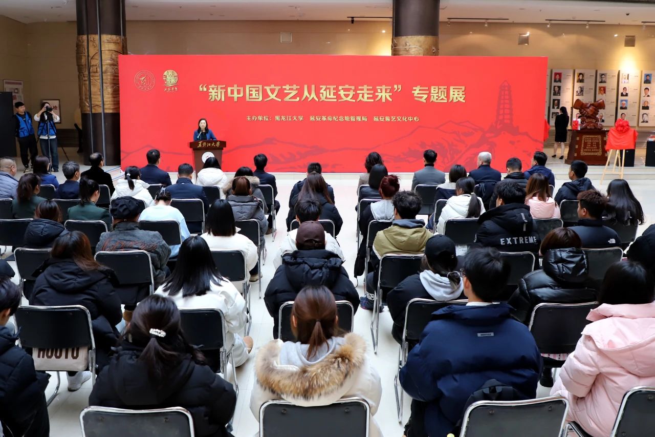 丁宏在主持仪式时表示,此次专题展览是延安革命纪念地管理局、延安鲁艺文化中心与黑龙江大学为弘扬延安精神、赓续红色血脉,用好红色革命资源,开展丰富思政实践,积极构建学校“大思政”工作格局的一次有益探索。我们要以此次展览为契机,始终保持昂扬向上、奋发有为的精神状态,不断谱写黑龙江大学高质量发展的新篇章。