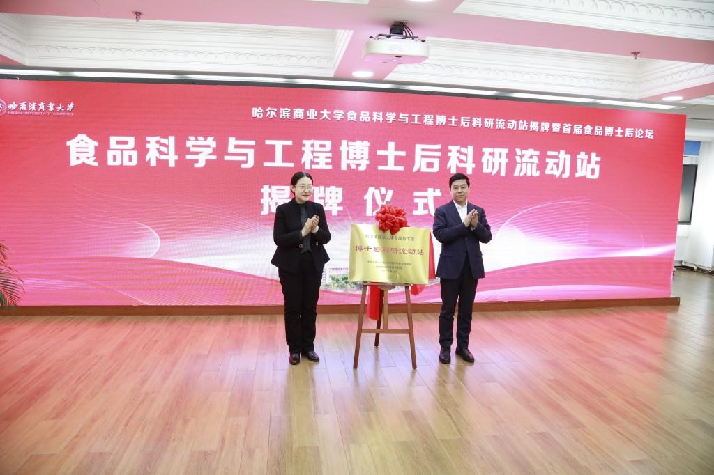 黑龙江网讯(记者 徐楠)12月22日,在黑龙江省人力资源和社会保障厅指导下,哈尔滨商业大学成功举办“食品科学与工程博士后科研流动站揭牌仪式暨首届食品科学与工程博士后论坛”。会上,与会领导宣读了学校获批增设食品科学与工程博士后科研流动站的批复文件,为博士后科研流动站揭牌,并为首批博士后导师颁发证书。