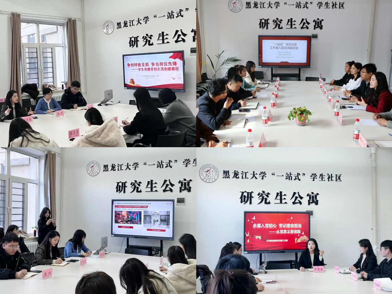 为有效落实教育部关于高校“一站式”学生社区综合管理模式建设工作的重要指示批示精神,黑龙江大学研究生院坚持抓实“三个突出”,即突出党旗领航,完善组织构建;突出党建引领,提升政治功能;突出文化浸润,发挥品牌效应,不断探索“一站式”学生社区建设新模式,不断加强党建和研究生思想政治教育工作,积累了丰富经验,取得了显著成效。