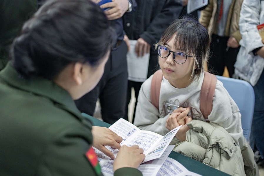 “学校为我们聘请就业指导老师、举行专场招聘会,为我们提供了和部队单位双向选择交流的机会,通过部队单位负责人的介绍和校友的经验分享,我更加清晰了自己的人生方向……”张书睿说。