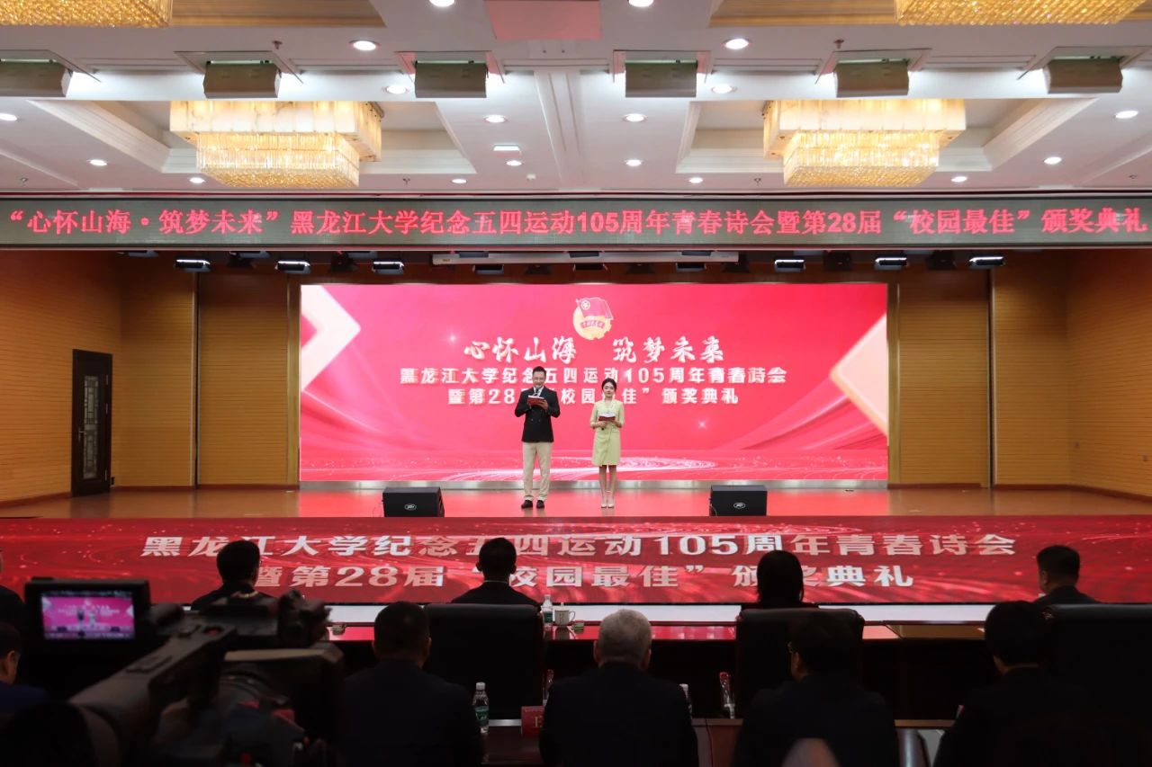 黑龙江网讯(记者 徐楠)为纪念五四运动105周年,全面落实立德树人根本任务,集中展示新时代黑大学子的精神风貌和价值追求,汇聚推进龙江振兴发展和中华民族伟大复兴的青春力量。4月28日下午,黑龙江大学在主楼一楼报告厅举行“心怀山海·筑梦未来”纪念五四运动105周年青春诗会暨第28届“校园最佳”颁奖典礼。黑龙江大学校领导、相关职能部门负责人、主管学生工作领导、专职团干部、学生代表及受表彰学生参加活动。