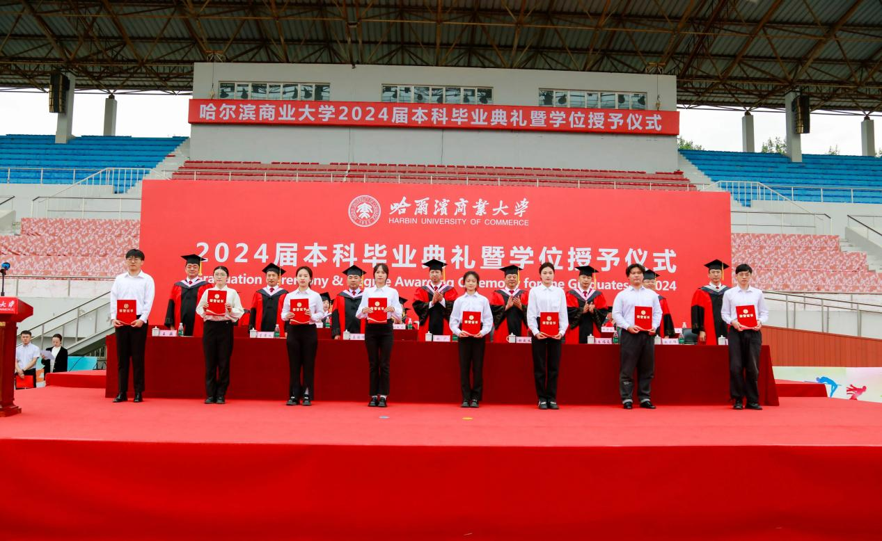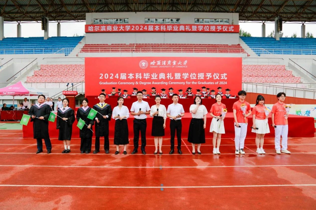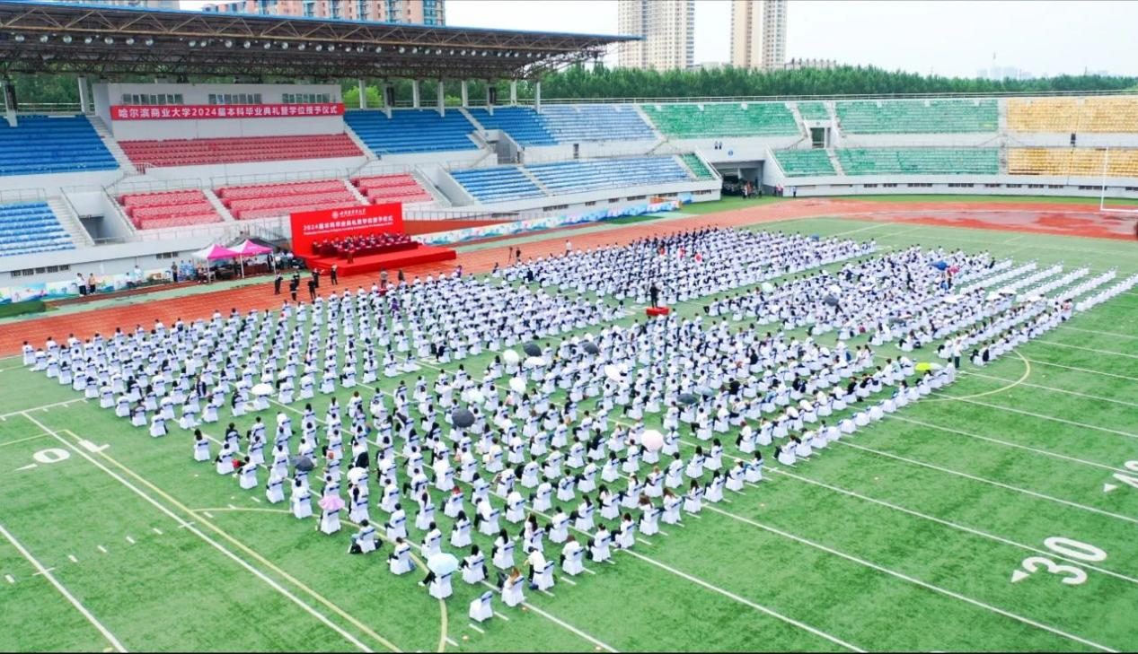 6月20日,哈尔滨商业大学举行2024届本科毕业典礼暨学位授予仪式在学校体育场隆重举行,典礼在线上同步直播,学校师生,海内外校友共同见证和庆祝2024届全体本科毕业生的难忘时刻。近10万人次通过线上直播观礼。作为新中国第一所多科性商业大学,学校经过70余年的发展建设,一代代哈商大人践行着“求真至善、修德允能”的校训精神,在不断拼搏的奋斗路上,追梦、逐梦、圆梦。微光汇聚,星光闪亮,哈商大2024届的毕业生们不负热爱,奔赴山海,以扎实学识向祖国报道,再次走向了强商报国的新征程。