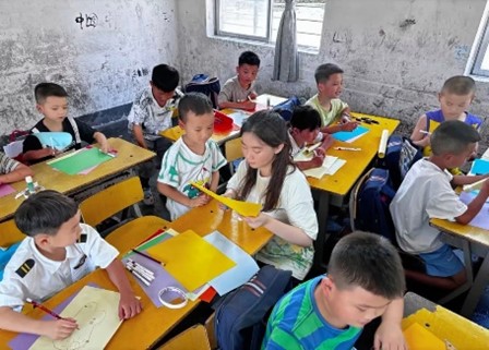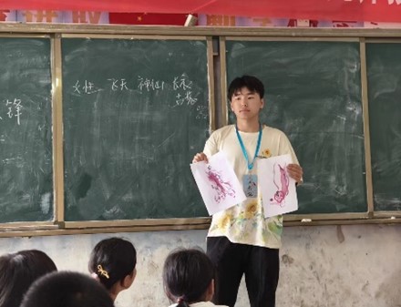 向美而行,推普助兴。朝阳爱心志愿服务队积极筹备宣讲、推普相关工作,成功入选2024年“中国历代绘画大系”全国大学生志愿宣讲团队、2024年“推普助力乡村振兴”全国大学生暑期社会实践志愿服务团队。支教期间,服务队采用艺术公开课、主题活动、绘画实践等多种形式开展了生动的山水画课堂,再现传统文化之美。同时,队员们带领学生诵读经典诗词,开展飞花令比赛、绕口令大赛,通过访问、发放调查问卷等方式深入了解村民普通话使用情况,设计出符合当地特色的普通话推广方案,并在当地举办普通话推广座谈会,为乡村振兴贡献青春力量。