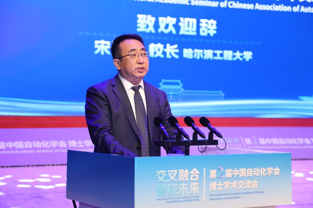 哈尔滨工程大学党委副书记、校长宋迎东致辞表示,本次大会是加强自动化领域交流合作的重要平台,希望与会专家学者充分交流研讨,积极探索自动化领域及人工智能新方向,共同推动学科发展和技术进步,促进自动化领域的发展与繁荣。