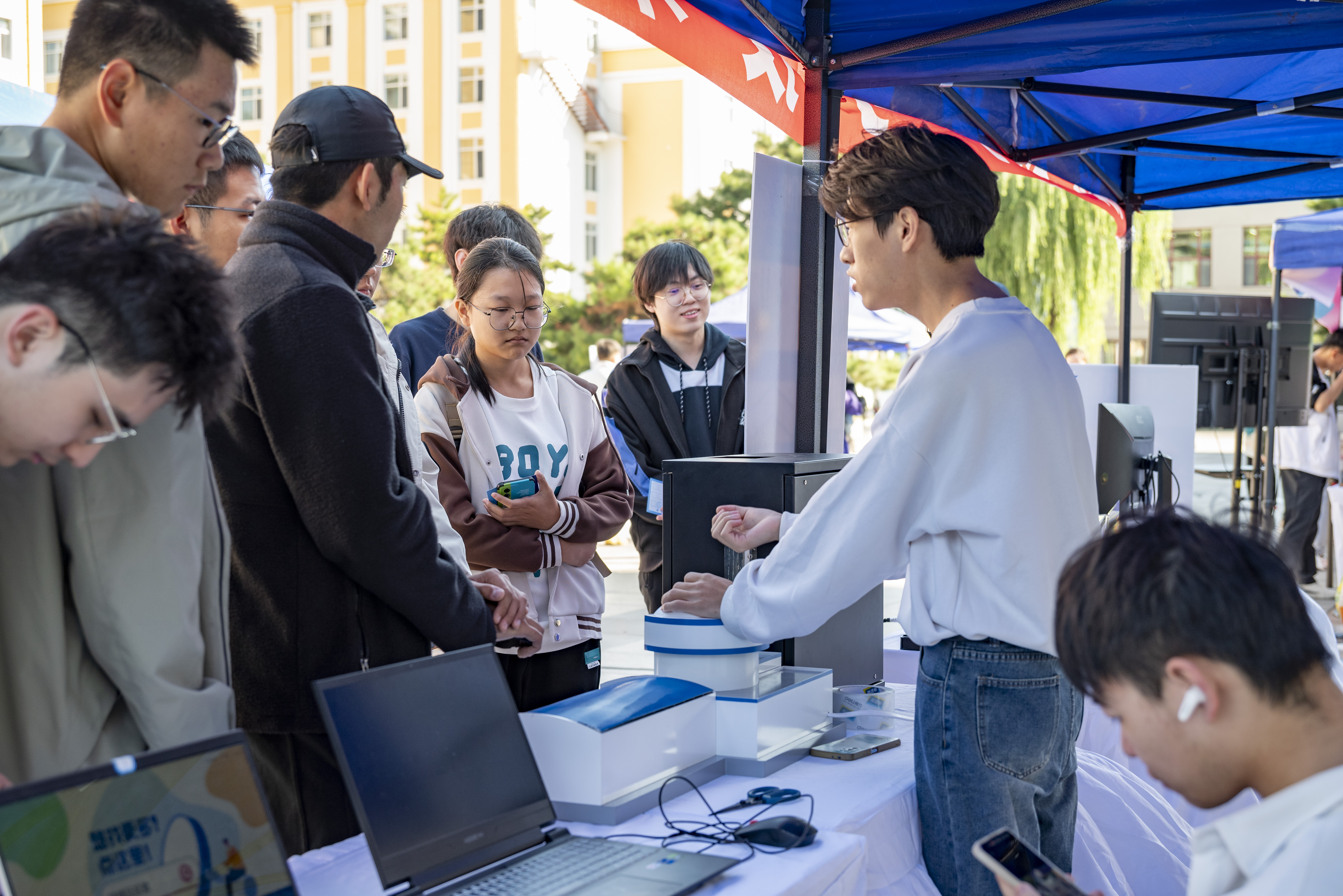 学院展区内,哈工程船舶工程学院展示了微小型水下自主作业机器人、一种通用式水下实验平台、水面无人艇等众多优秀科创作品;动力与能源工程学院设立节能减排特色展区,展示了风起“露”涌——海水淡化系统、奇藻贪黑——核废水处理系统,充分展示了动力学院节能减排特色理念;水声工程学院展出了声学特色设备超声雾化仪、超声清洗器和历年电赛获奖作品。超声设备展现了声学特色,可以实现眼镜清洗,让同学们“看到”声音的独特力量;智能科学与工程学院展示了第十九届全国大学生智能汽车竞赛国奖作品、RoboMaster机甲大师参赛机器人、第十九届全国大学生智能汽车竞赛创意组国奖作品等一系列成果;核科学与技术学院展示了“核+X”课外创意大赛的优秀作品和证书、“挑战杯”赛事中取得历史性突破的获奖作品展示——特等奖作品《一种高效过滤核电站安全壳放射性物质的氢气取样装置》,辅以“核电站主题趣味桌游+科普展板”,揭开了核能的神秘面纱。
