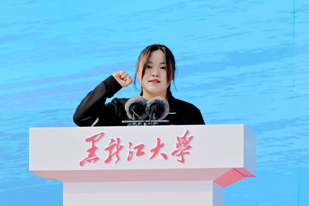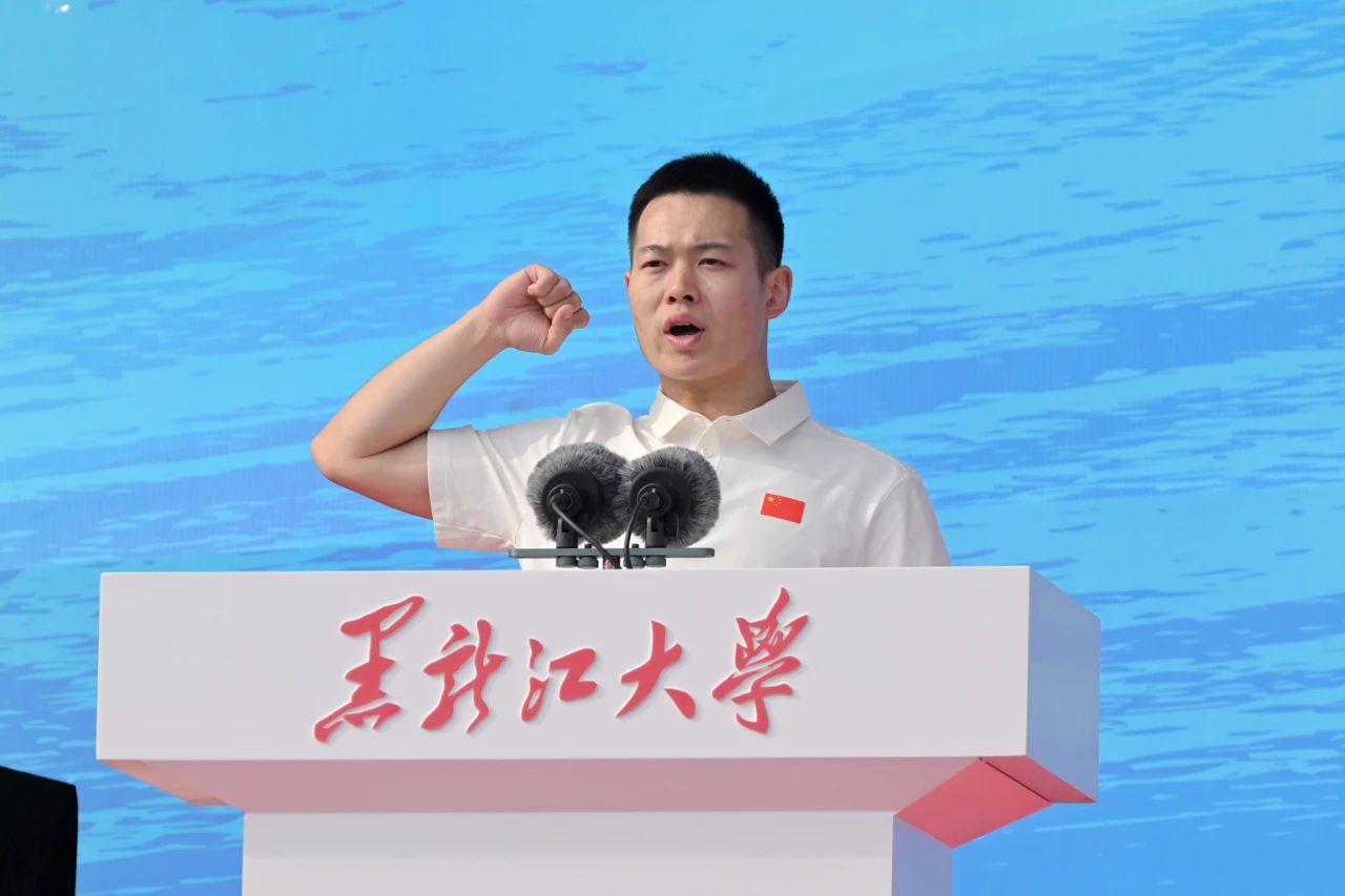 黑龙江大学党委书记迟宝旭宣布第五十五届田径运动会开幕。