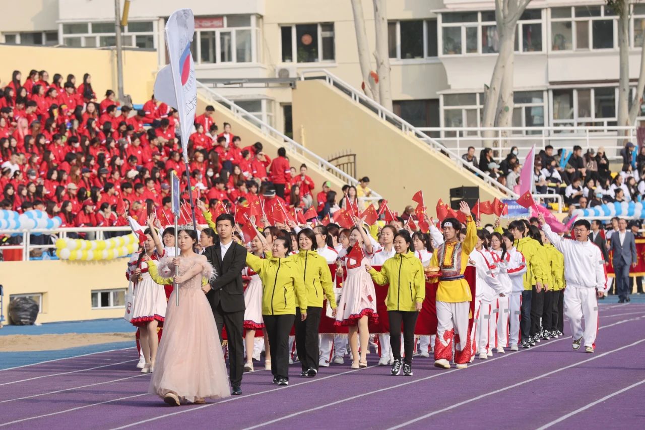 伴随着激昂的音乐,全校各单位运动员代表方队在国旗护卫队、花束队、刀旗队的引导下有序进入会场并接受检阅。他们队列整齐,精神抖擞,以铿锵有力的步伐、高亢嘹亮的口号充分展现出广大学子朝气蓬勃的青春活力与团结奋进的精神风貌。