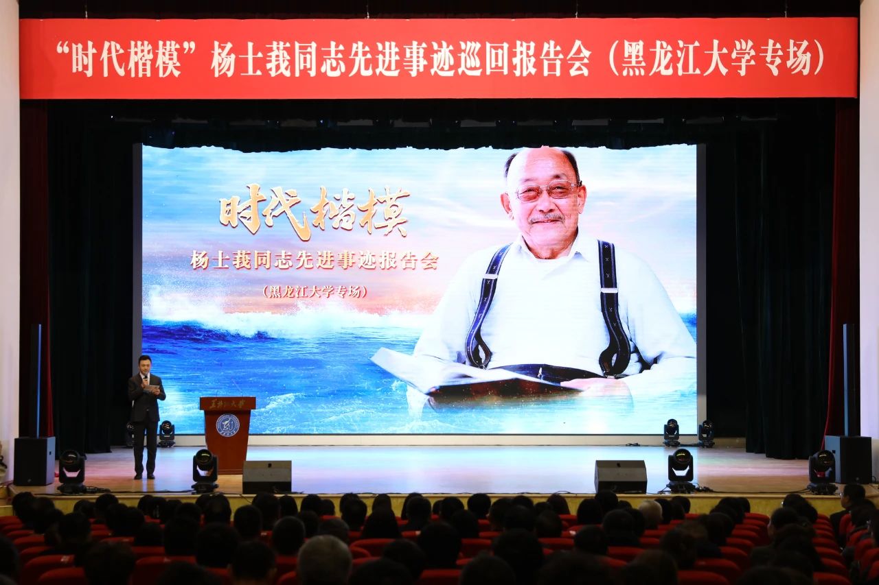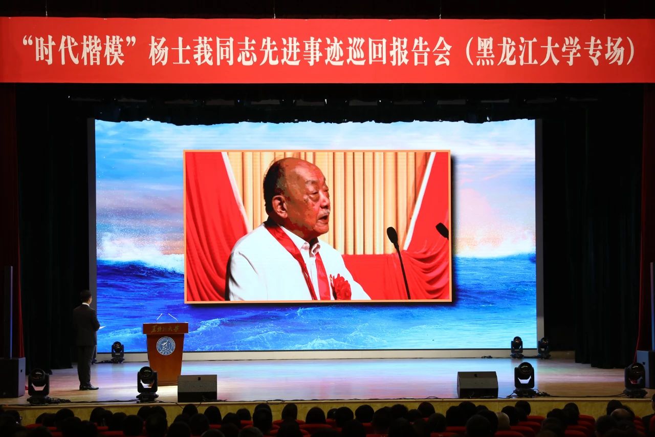 黑龙江网讯(李尚泽 刘雯瑞 记者 徐楠)11月28日下午,“时代楷模”杨士莪同志先进事迹巡回报告会(黑龙江大学专场)在音乐厅举行。省委宣传部副部长、省精神文明办副主任尚铁权,黑龙江大学党委书记迟宝旭,校党委常委、统战部部长王培军,校党委常委、宣传部部长杨其滨,校党委常委、组织部部长王刚,学校二级党组织负责人、各职能部处负责人、各学院科研教师和学生代表1000余人参加报告会,报告会通过龙江高校网络思政中心视频号进行同步直播。