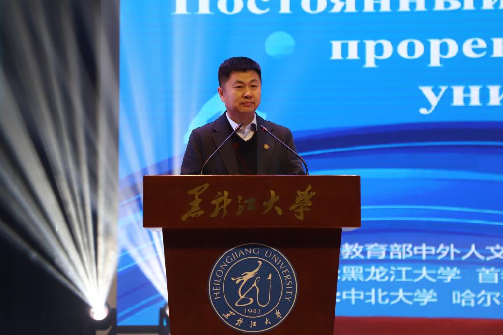 迟宝旭在讲话中代表学校向莅临活动的领导嘉宾们表示热烈的欢迎和由衷的感谢。他指出,今年是“中俄文化年”启动年,中俄高校积极响应,重点发展合作办学、科研攻关、人才培养、语言教学等领域,筑牢合作桥梁。他表示,黑龙江大学是我国对俄办学的龙头院校。自建校以来,学校培养了大批优秀人才,建立了与俄语相关的人才培养体系,为助力中俄人文交流作出了积极贡献。希望通过此次活动,促进两国高校间的资源共享,拓宽中俄青年的交流平台,让中俄青年间的互动和友谊绽放出更加璀璨的光芒。