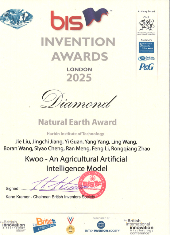 黑龙江网讯(记者 徐楠)近日,哈工大计算学部、人工智能研究院智慧农场技术与系统全国重点实验室刘劼教授团队研发的“天工开悟(Kwoo)”农业大模型荣获2024年度英国国际发明展最高奖——钻石奖。