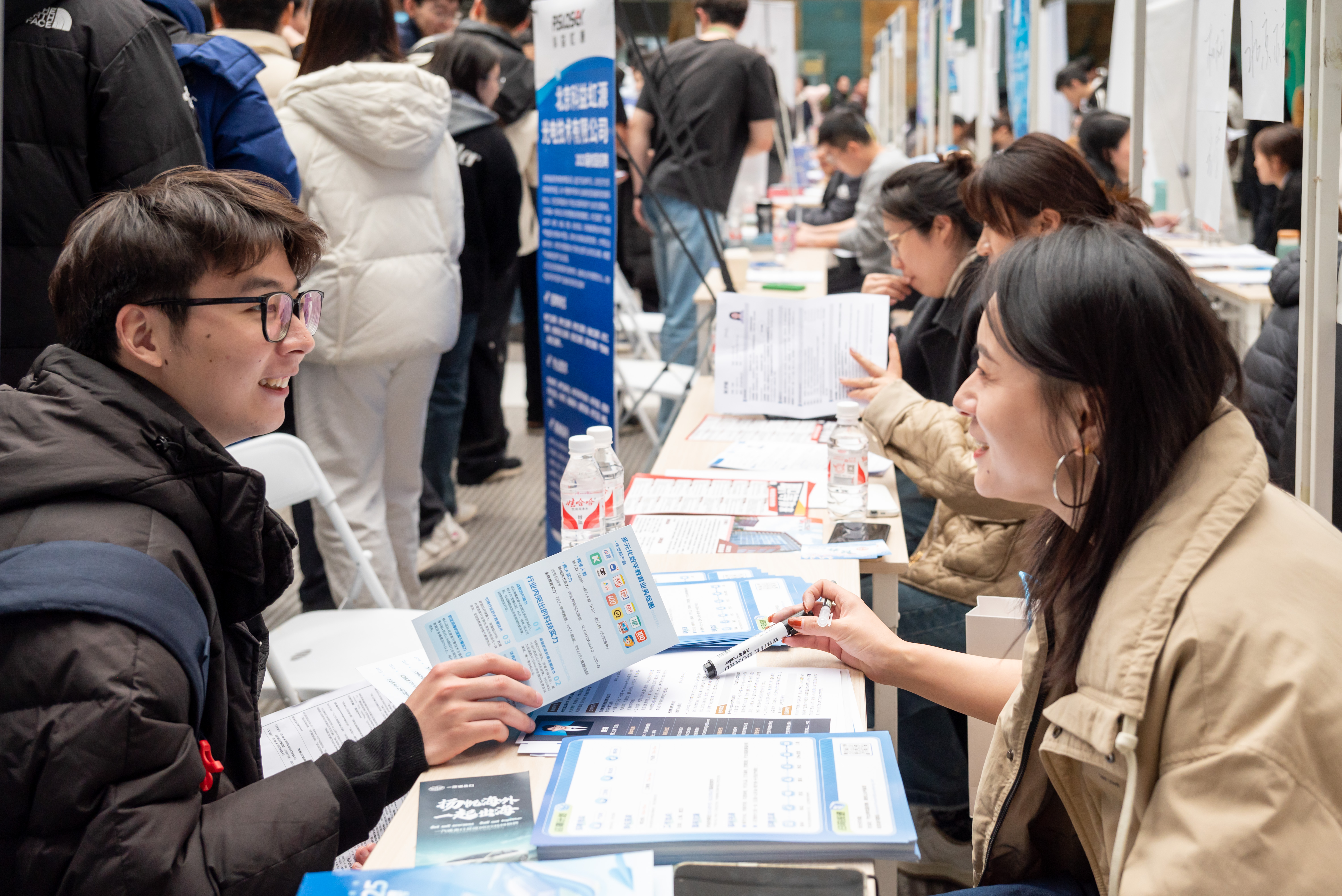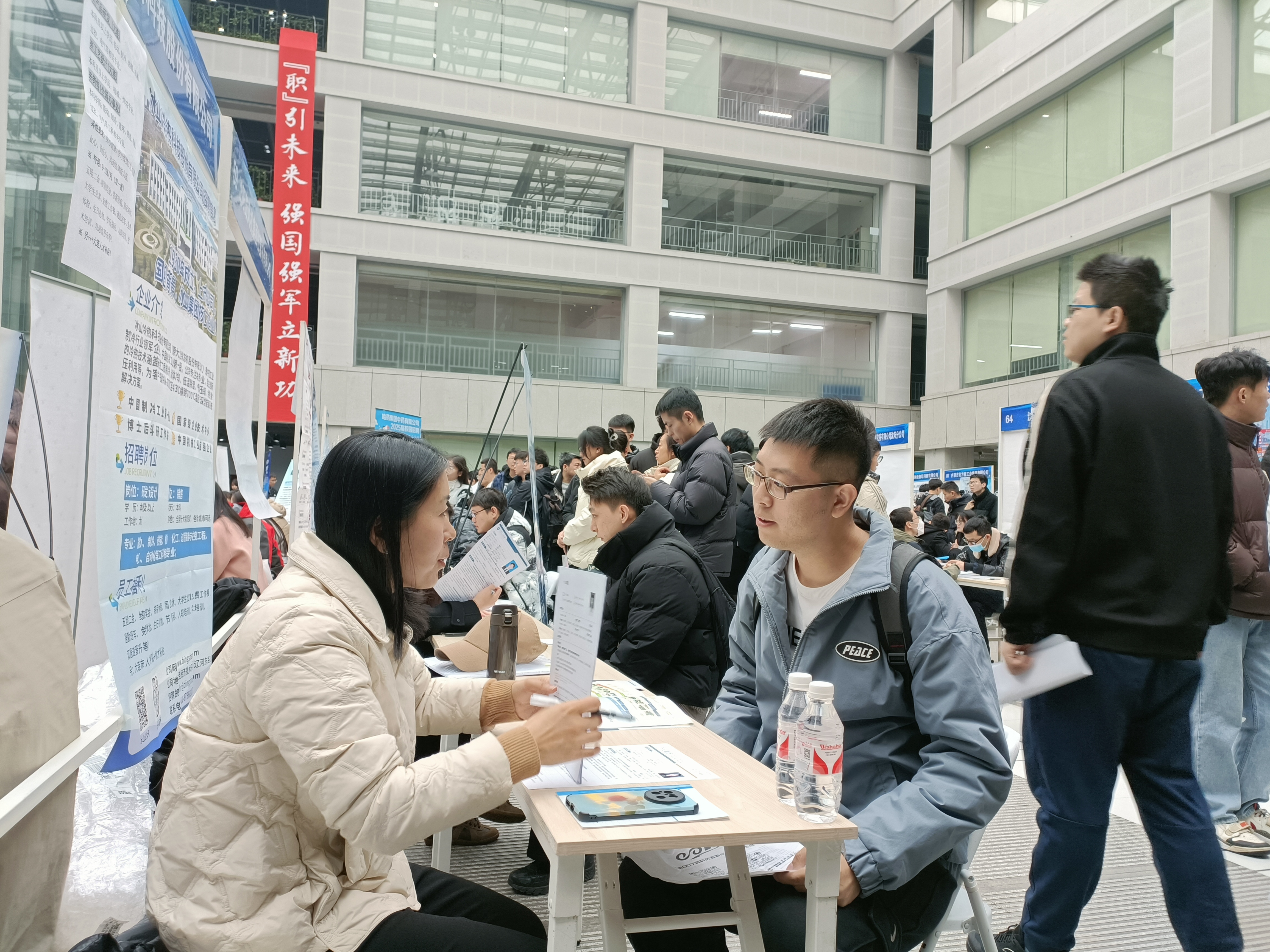计算机学院2021级本科生贾德辉早早来到招聘会现场,与心仪企业沟通交流:“我的专业是软件工程,理想的岗位是跟人工智能相关的。今天来到现场,我发现可选择的岗位还是很多的。我在选择单位时比较看重它的发展前景和未来个人的成长空间,好的工作平台会让我获得更多更好的机会。”