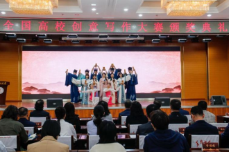 颁奖典礼中,文学院学子以音画共鸣诠释文学之美。诗词吟唱《遇见诗经》,以悠扬韵律将古老诗篇化为灵动音符,带观众穿越千年诗意。朗诵《薪火永续 青春长歌》则以铿锵之声,传递文学精神与青春力量。一唱一诵,以艺术魅力深化文学氛围,为典礼增添别样光彩。