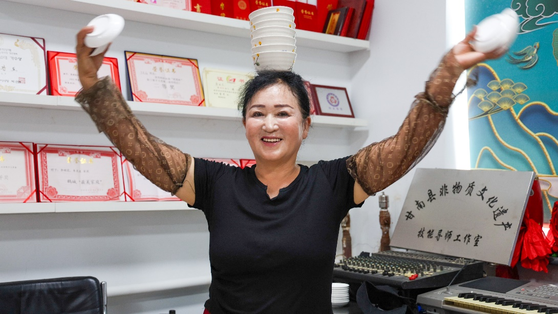 精美绝伦的玻璃画,别具一格的碟子舞,栩栩如生的泥雕塑,技艺精湛的手绘墙,韵味独特的石雕刻,这些丰富多样的文化形式,是甘南县文化底蕴的生动体现。在接受实践团成员采访时,大美名师工作室负责人、玻璃画非物质文化遗产代表性传人王金存介绍道:“玻璃画独特之处在于颜料调制特殊,先画细部,后画整体,反向运笔,正面显图,将艺术之美呈现在玻璃上。”传承至今,玻璃画已有100多年历史,现已将玻璃画带进课堂,组建玻璃画社团,传授学生玻璃画技艺。碟子舞传承人李顺花现场为实践团成员表演了碟子舞,灵动的身姿伴随着清脆碟声,不仅是朝鲜族文化的独特表达,更展现出当地人民的热情与活力。