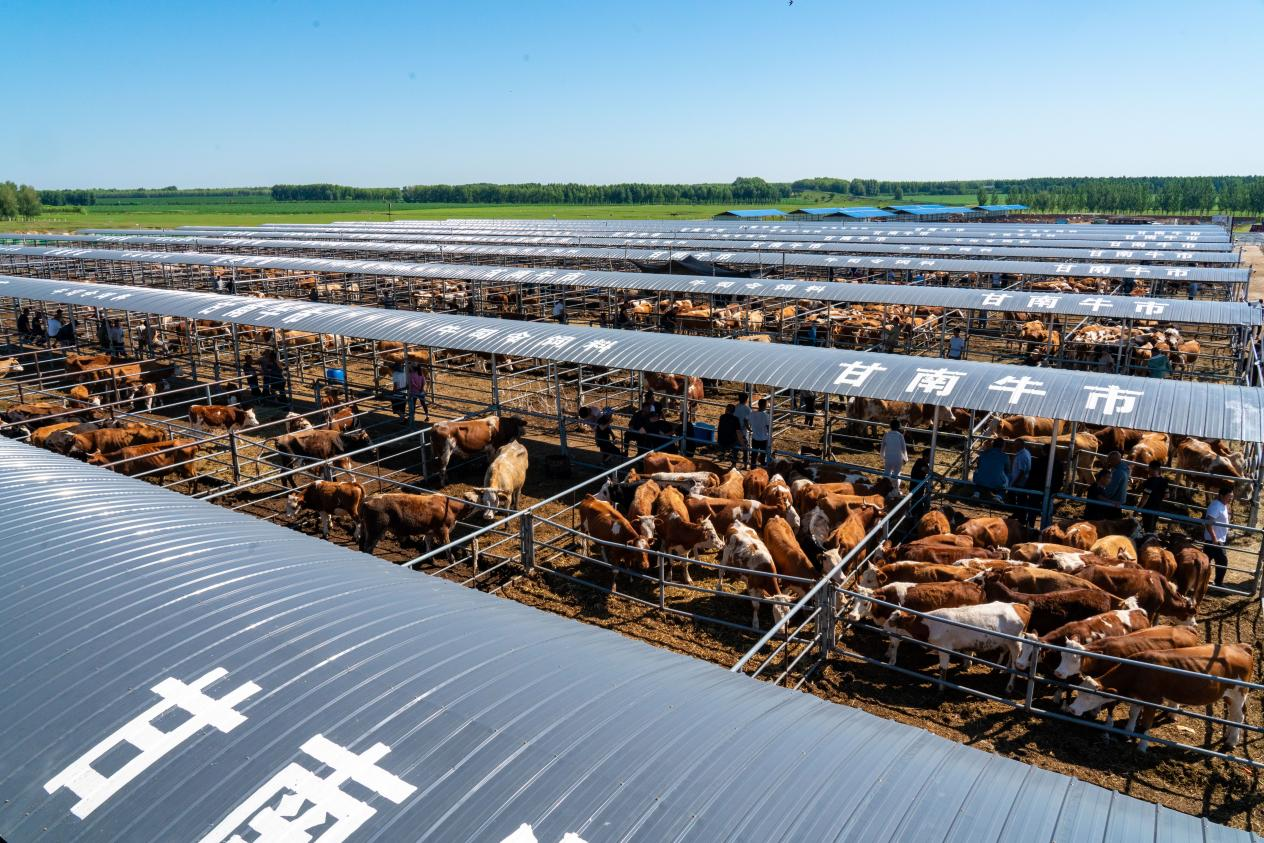 可容纳牲畜3万头(匹)进行现场交易,年均交易量为40万头(匹)左右,年均交易额40亿元以上的牛市到底“长啥样”?实践团成员在位于甘南县与内蒙古阿荣旗交界处的欢喜牛市大开眼界:这里居然还有来自全国各地的230余位“牛经纪人”,他们专职从事肉牛代买代卖中介服务,提供优质牛源信息,帮助牛贩、客商快速实现交易目的,并且开办11家“牛托所”进行托管服务,买了牛暂时带不走也没关系,专业托管喂料、防疫一条龙服务。“说它是‘东北牛市顶流’应该没人反对吧?纯产业链思维啊!”同学们不禁惊叹道:“果然牛市,真牛!”