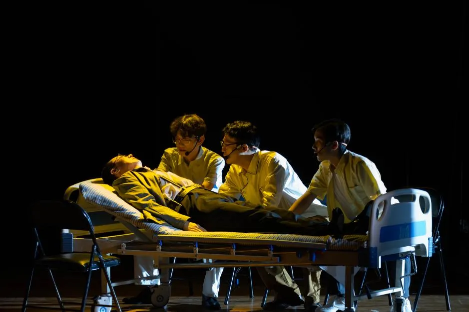 第一幕《国家需要:从觉醒到立志》通过“抗美援朝”“到哈军工去”“南海考察”三个篇章,讲述杨士莪从少年时代至青年时代,历经家国破碎,立志科技报国的故事。“舞台剧《杨士莪》再现了先生为国‘听海’的一生,少年杨士莪目睹抗日战争给国家和人民带来的伤痛,国破家亡与颠沛流离让他深刻体会到国家兴亡与自身命运的紧密相连,幼小的心灵中萌发科技报国的种子,作为水声学子,我将弘扬伟大的抗战精神,接过先生手中的接力棒,在水声事业中潜心钻研,为筑牢‘水下国门’作出贡献。”哈尔滨工程大学水声工程学院2023级硕士研究生姜安琪激动地说。
