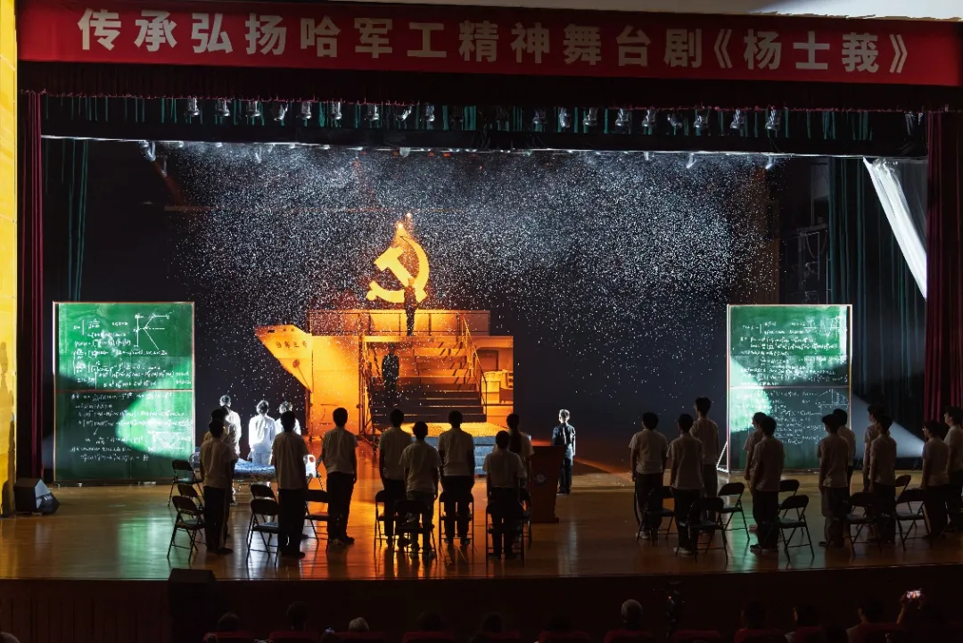 舞台剧《杨士莪》由哈工程师生团队原创,导演、演员、场务等90余位演职人员来自全校13个学院,汇聚本硕博不同年级学生。从台前到幕后,哈工程师生汇聚智慧与力量,完成了“从0到1”的集体创作,在学科背景与戏剧艺术交融的过程中,提升审美能力、创新能力、团队协作能力;通过演绎杨士莪“许党报国、一生听海”的故事,树立崇高理想、涵养家国情怀、传承红色基因,该剧的创演编排不仅是一次鲜活的美育教育,也是一堂生动的“大思政课”。
