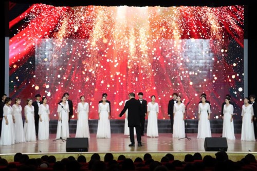 文艺汇演环节,龙藏文化交相辉映,精彩不断。日喀则市民族艺术团带来的《情在日喀则》《山水间》《青藏高原》等歌曲,空灵悠扬的旋律尽显雪域风情;《珠峰情韵》《最美家乡》《堆谐 极地踏歌》等舞蹈,或柔美灵动或豪迈奔放,展现高原儿女的活力与情怀;二重唱《援藏大哥》更是以真挚歌声,致敬为西藏发展无私奉献的援藏干部,打动现场每一位观众。黑大学子也以艺术之力回应这份深情:学生艺术团、红柳民族团结进步教育工作室带来的群舞《美美与共》,用活力舞姿诠释各民族文化交融共生的美好图景;听雪合唱团献唱的《我爱你中国》,引发全场起立共唱,将活动氛围推向高潮,唱出各族儿女对祖国的赤诚热爱。活动在歌伴舞《永远跟党走》中落下帷幕。