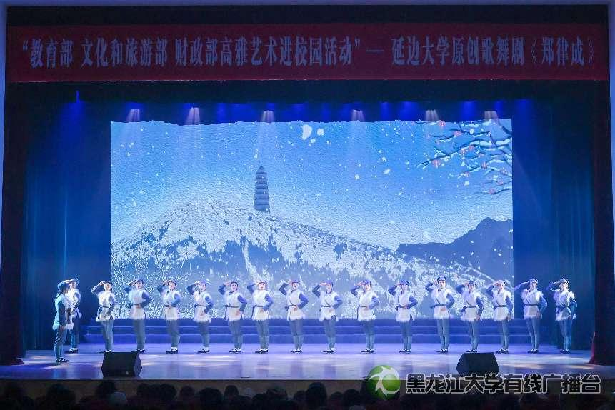 黑龙江网讯(记者 徐楠)9月24日,由教育部、文化和旅游部、财政部主办,黑龙江大学与延边大学共同承办的“高雅艺术进校园”活动在音乐厅隆重举行。延边大学原创民族歌舞剧《郑律成》作为本次核心演出节目,为黑大师生带来两场精彩展演。黑龙江大学党委副书记刘凤影,校团委、艺术学院等部门负责人同近2000名师生观看演出。
