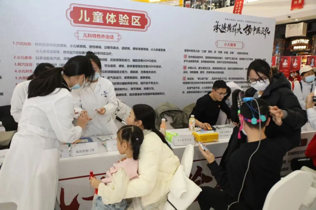 儿科互动区也吸引了不少家长的热切关注,现场开展的儿童心理行为与生长发育评估、机械排痰治疗、穴位贴敷、防感香囊、小儿针灸、耳穴压豆、抽动障碍、注意力缺陷多动障碍、学习困难指导、感统训练、语言发育迟缓训练指导等丰富的服务内容,为家长们提供了一次不用进医院也能得到专家指导服务的良好体验。