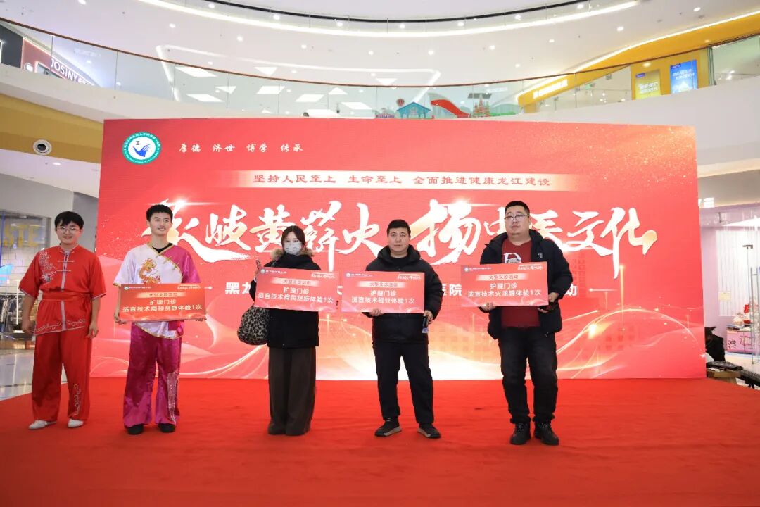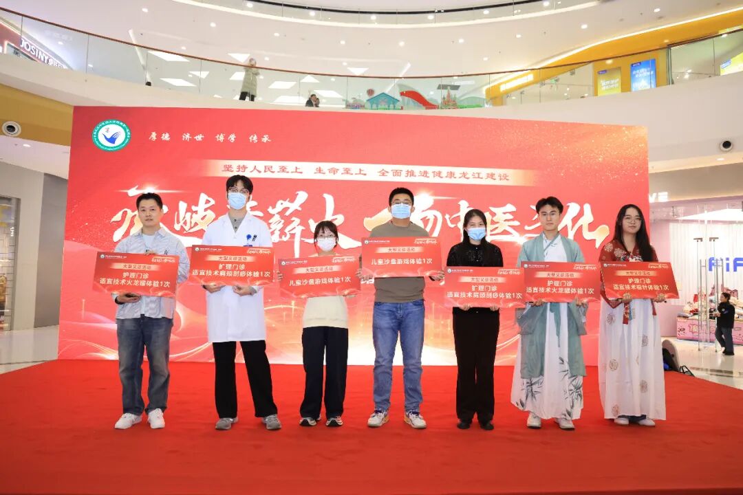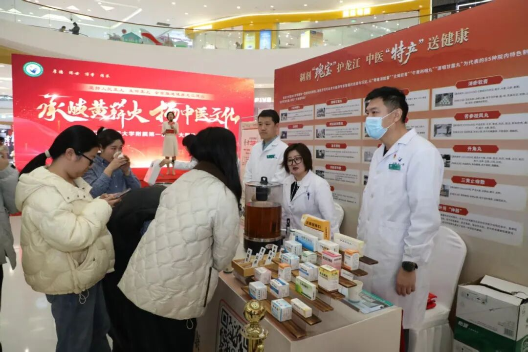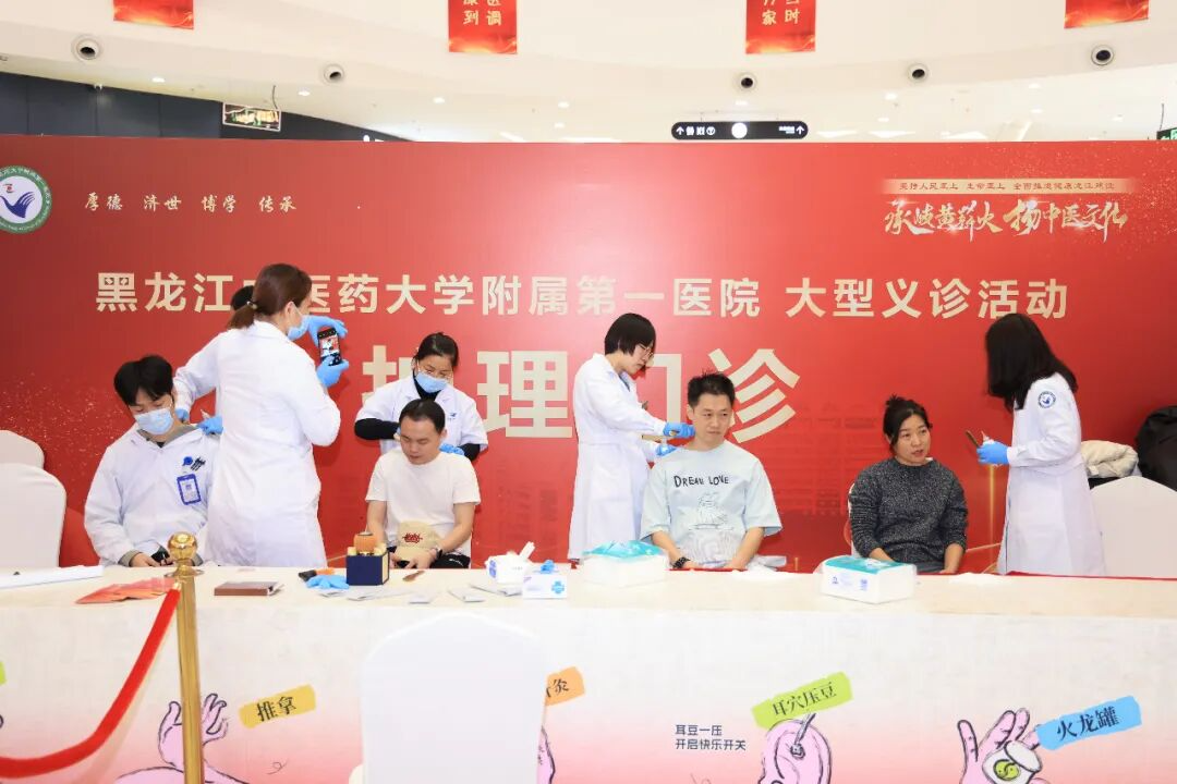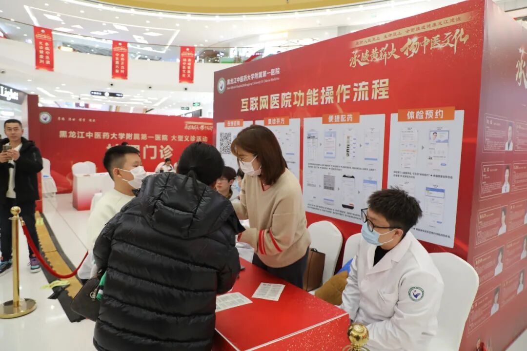 为积极践行人民至上、生命至上的理念,全面推进健康龙江建设,11月28日,黑龙江中医药大学附属第一医院携省内中医骨干专家团队、中医特色诊疗与养生好物进商圈,以“承岐黄薪火 扬中医文化”为主题,在哈尔滨融创茂商场开展大型中医健康惠民义诊活动,诊疗服务3000余人次,让广大市民在休闲逛街之余,沉浸式感受中医药的独特魅力,解锁中医药“一站式”健康养生服务新模式。