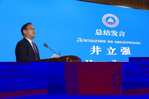 大会闭幕式由黑龙江大学国际合作与交流处处长胡晓枫主持。对外经济贸易大学国际学院院长刘金兰、莫斯科国立语言大学国际合作与国际化处处长绍基娜、黑龙江大学国际合作交流处副处长黄彩玉分别代表各论坛汇报研讨成果。莫斯科国立语言大学第一副校长佩特鲁恰克和黑龙江大学副校长井立强代表主办单位对本次年会进行了总结。