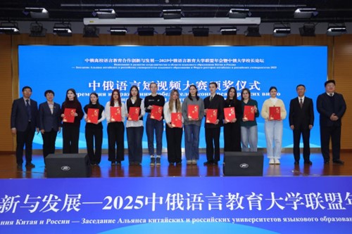 会上,黑龙江大学党委书记迟宝旭、校长王敬波等领导和嘉宾为中俄语言短视频大赛获奖选手颁奖。会上还宣读了联盟新成员高校名单,发布了中俄语言教育大学联盟2026-2027路线图及联盟标志。