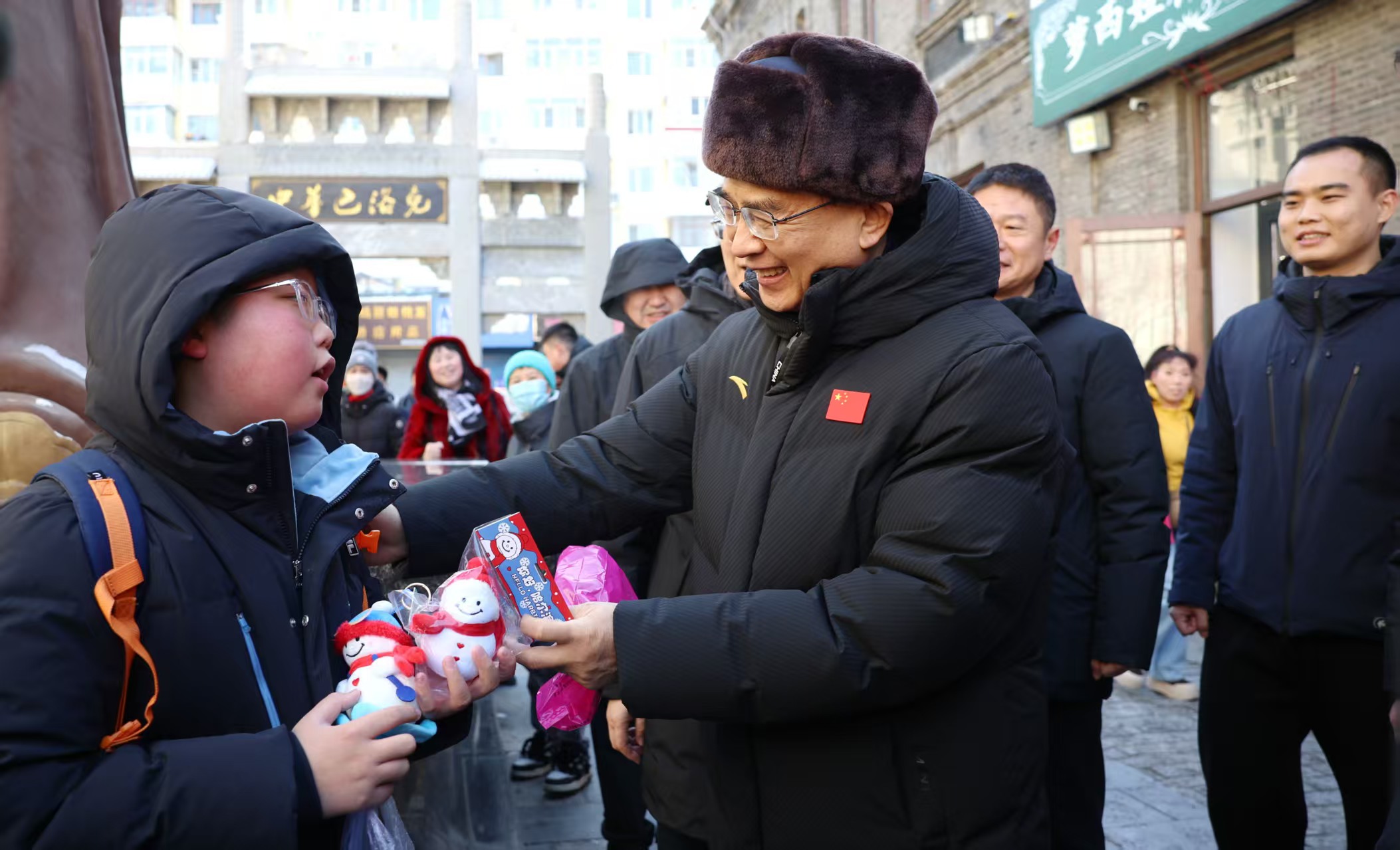 哈尔滨中华巴洛克历史文化保护街区张灯结彩、喜气洋洋,各地游客漫步在承载着百年城市记忆的面包石上,打卡街边的十二兽首冰雕,感受着北国风光与特色文化交织的浓浓年味。许勤走进北大荒沉浸式历史展馆、暖心冰屋和沿街店铺,了解经营销售、旅游消费等情况,向各地游客问好,询问大家游玩感受,要求有关部门放大春晚哈尔滨分会场效应,推出更多年味浓厚的民俗活动和消费场景,开发更多独具龙江标识的文创产品,用诚信经营、暖心服务提升海内外游客满意度,推动特色文化旅游可持续发展。