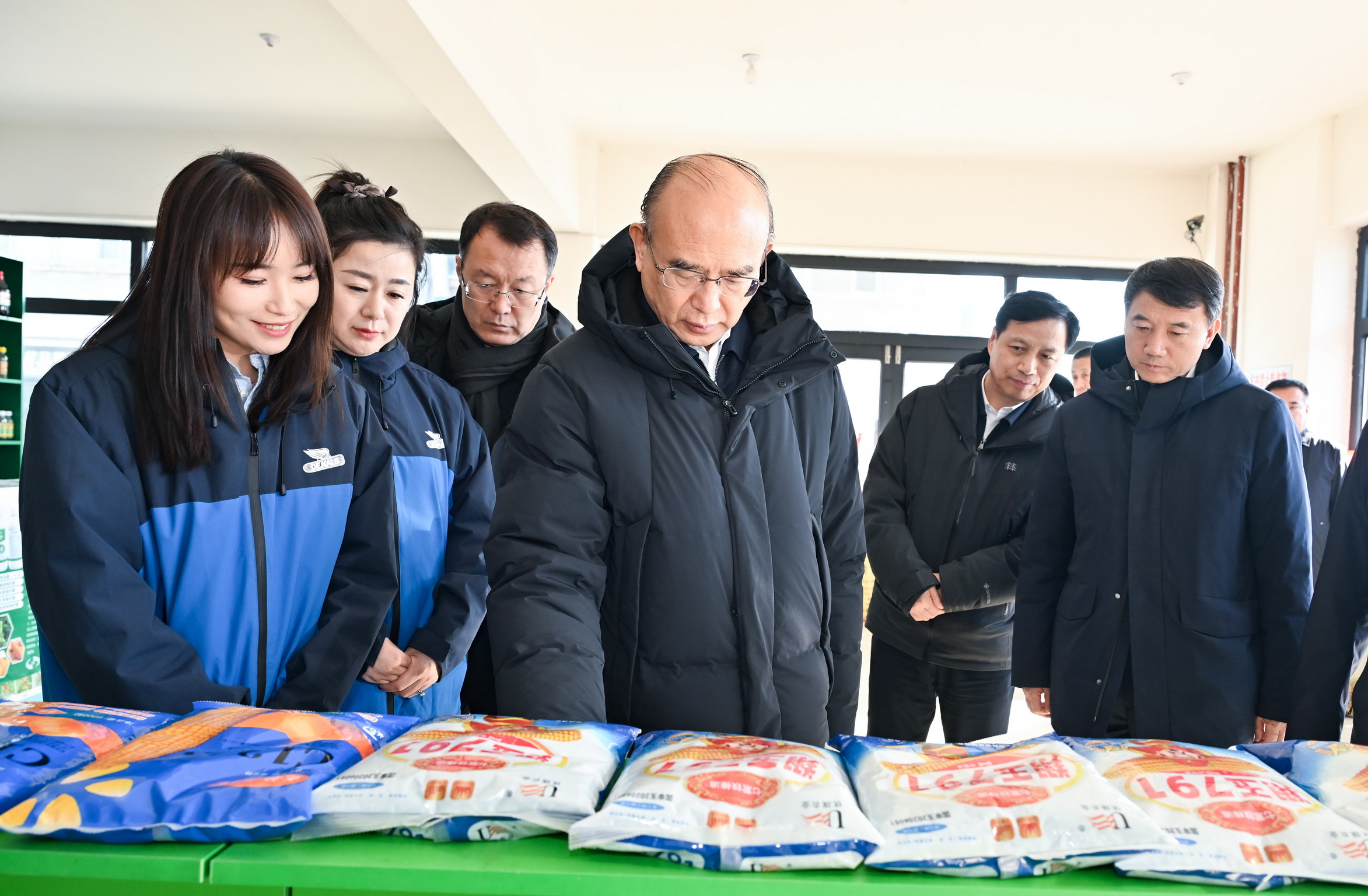 在尚志市智赢农资公司,许勤与商家和农户交流,了解农资销售、价格等情况。
